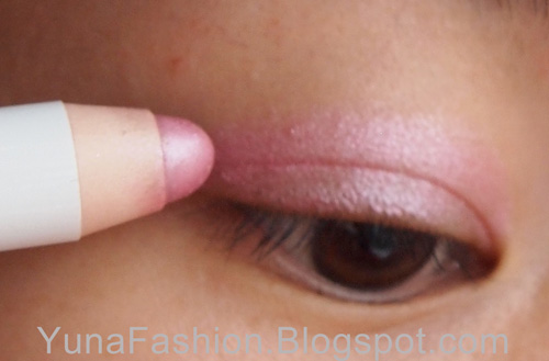 Apply a pink duo chrome eyeshadow all over the crease and lid to give a pink sheen effect on the eyeshadow